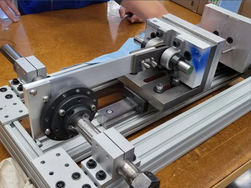 A linkage was designed to transfer rotational into translational force in order to crush an empty can, but have a shear pin fail before a full soda can could be crushed. The design was specialized to require almost zero input force to crush the empty can, while still having the pin fail with the full soda can.